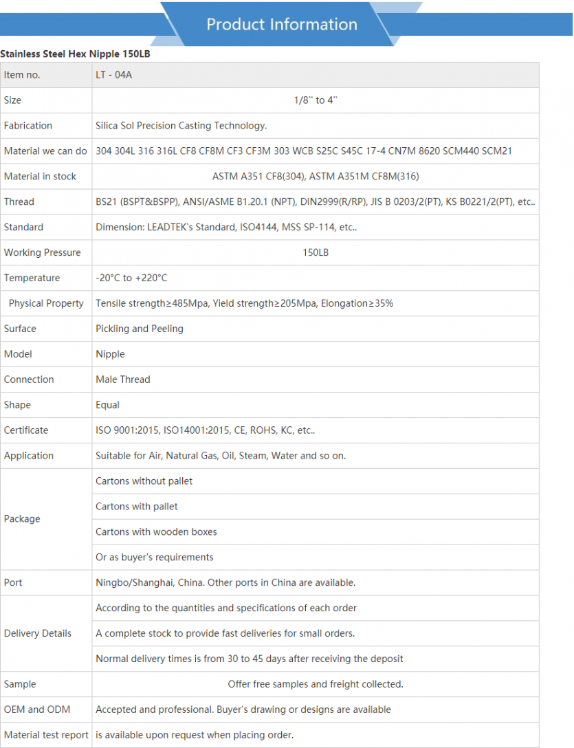 헥사니플 (Hex Nipple) > 스테인리스 피팅