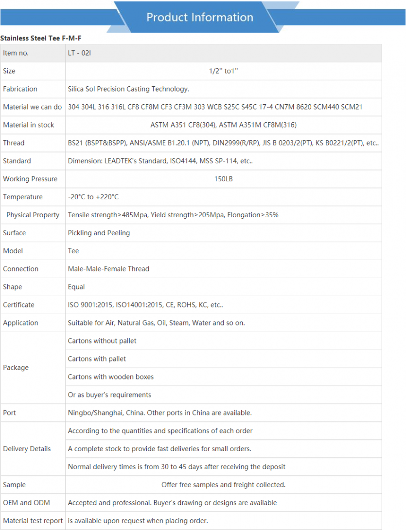 티 M-M-F (Tee M-M-F) > 스테인리스 피팅