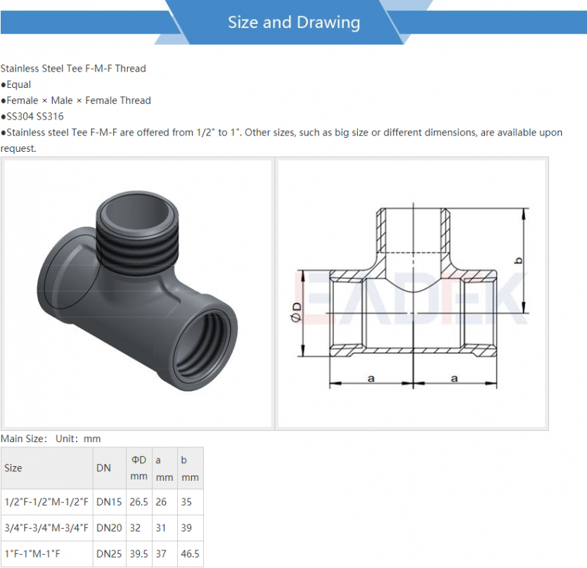 티 F-M-F (Tee F-M-F) > 스테인리스 피팅